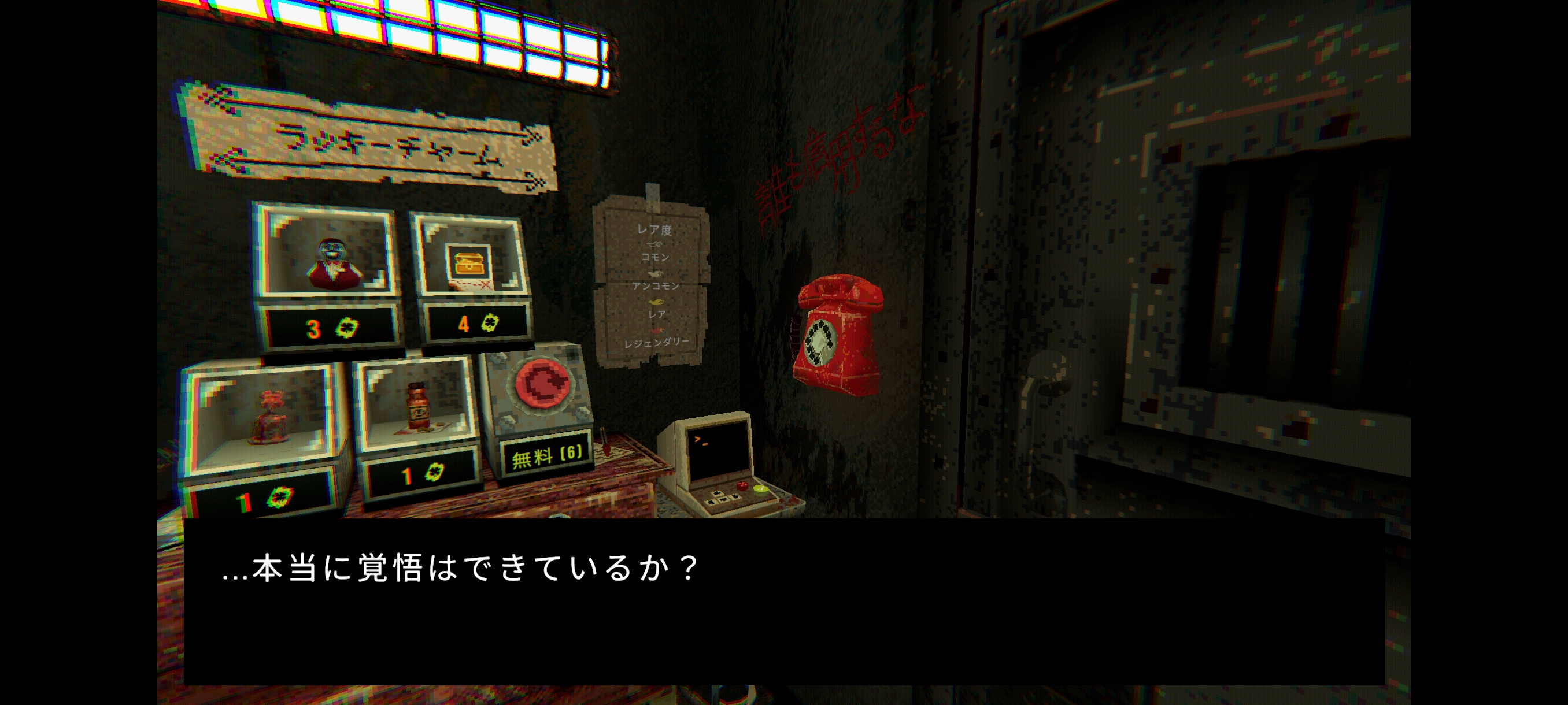 偽脱出ルートではこの時「…本当に覚悟はできているか?」と聞いて来るが、実際脱出できないしそのルートではギャンブル依存を断ち切る覚悟は固まっていなかったんだろう。