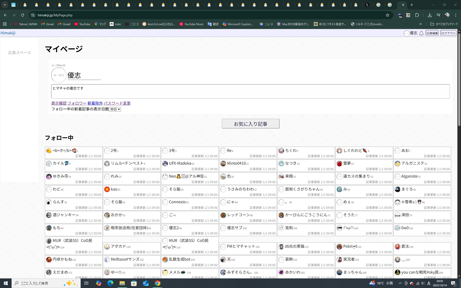 専門技術 ヒマキジ使い方 更新日 2025-10-14 優志 えー今日はヒマキジに記事非表示機能ができました2025/10/14解説していきますまずこのように「新着記事を除外する」を押すとこうなりますそうするとこのように除外リストに乗るんですね解除の仕方はその人のプロフィールに飛んで解除を押すと解除できます ちなみに「新規除外ボタン」を押すとすでに除外されてる人がでてくるのでそっから除いて解除もできます 89view 9点 良い 悪い