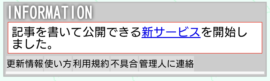 上記の画像はINFORMATION。新サービスを押すことでサイトに移動できるが長押しで別のタブから飛ばないとそのまま移動してしまう。