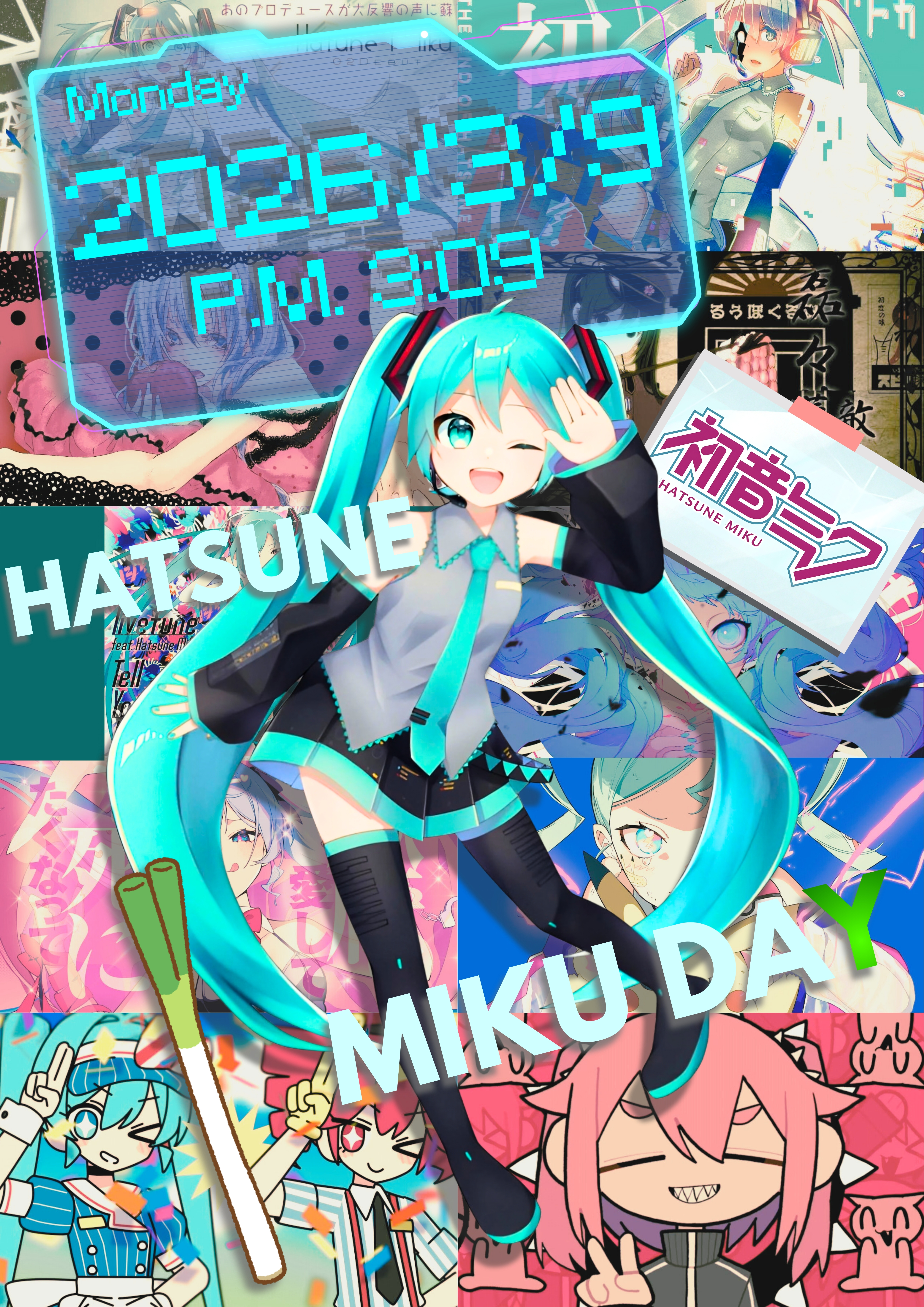 え〜、この画像は、ミクの日、つまり3月9日に投稿したかったんですが、すっかり忘れていて必死に取り組んでやっとできました。なので、その分評価してもらえたら幸いです。